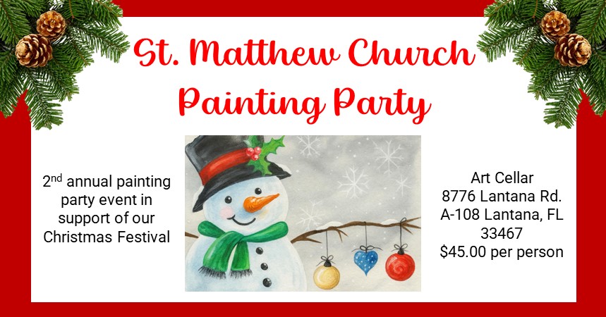 Join us for a fun family night out at our 2nd Annual Painting Party event in support of our Christmas Festival on Tuesday October 21, 2025 – 6:00-8:00pm at Art Cellar, 8776 Lantana Rd. A-108 Lantana, FL 33467.